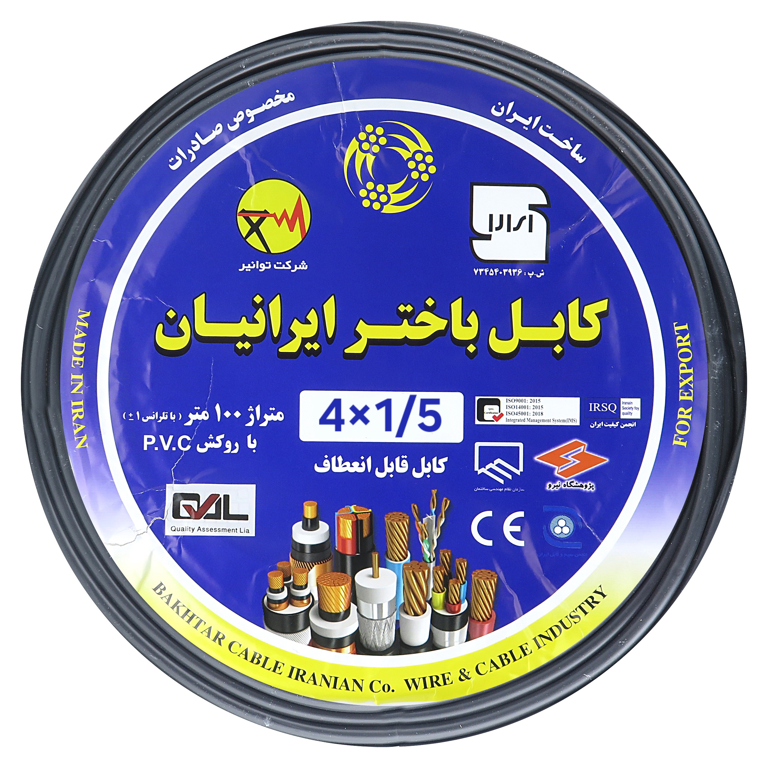 کابل افشان 1/5×4 باختر ایرانیان توسط شرکت پارسیان کابل ایرانیان تولید شده است این کابل دارای 4رشته با سطح مقطع 1.5میلیمتر مربع است . ساختار این کابل به این شکل است که هر رشته کابل دارای هادی یا رسانا از جنس مس انیل شده کلاس 5 که توسط یک عایقpvcو دارای انعطاف پذیری بالایی است.